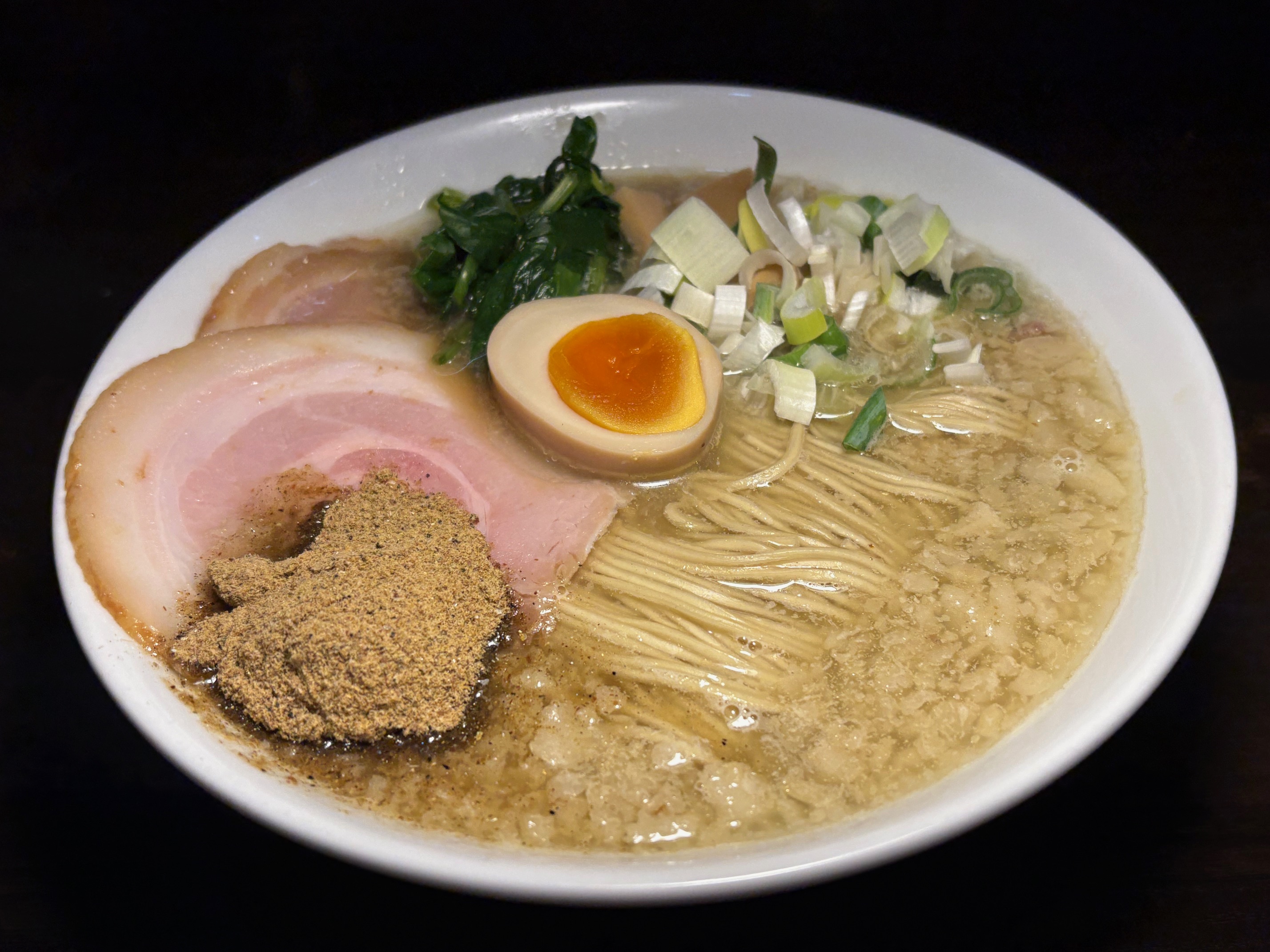 半玉、ホウレンソウ、ネギ、煮干し粉